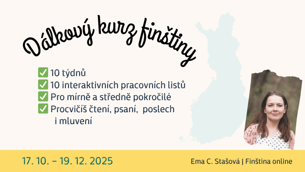Pro jakou úroveň tenhle kurz je? Pro mírně až středně pokročilé finštináře, úkoly budou připravené tak, aby je zvládli studenti na úrovni A1–A2. Ideálně byste měli mít za sebou alespoň první díl učebnice finštiny (jako je Suomen mestari, Oma suomi atp.).